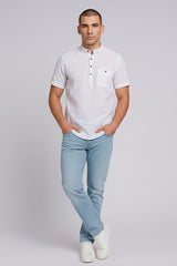 Men Multi Stripes Mandrin Neck Casual Shirt