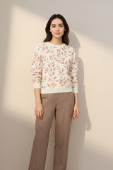 Women Floral Printed Round Neck Pullove Sweater