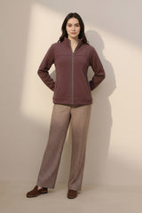 Women Solid Mandarin Neck Sweatshirt